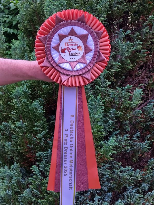 Deutsche online Meisterschaft 2025 3. Platz in der Meisterschaftswertung Kategorie M-Dressur mit Lotsi ![]() ![]() -------------------------------------------------------------------------------- Mai 2025 Lehrgang mit Christoph Hess ![]() Juli 2024 DOT Deutsche Meisterschaft Bei der Deutschen Meisterschaft der DOT gewann ich die M-Dressur mit Diomio sowie die L-Dressur mit Lotsi , mit Lotsi belegte ich noch den 2.ten Platz in der M-Dressur. Daraus ergab sich in der Meisterschaftswertung der 3.Platz. ![]() ![]() ![]() Diomio Lotsi___________________________________________________________________________________________________________________________________________________________ Turnier Bad Wörishofen Beim Reitturnier in Bad Wörishofen erreichte ich mit Lotsi in einer DRL den 5.Platz ![]() ![]() ------------------------------------------------------------------------------------------------------------------------------- 01.2024 Ergebnisse VDT und DOT Bei der Winter Challenge der VDT belegte ich mit dem inzwischen 23.j Leandro in der Kategorie Superior Oldie but Goldie den zweiten Platz mit der Wertnote 7,2 . Bei der DOT siegte ich mit Diomio (hier im Bild) in der M**- Dressur. ![]() ![]() --------------------------------------------------------------------------------------------------------------------------------------------------------------------------- 15.07.2023 DOT Deutsche Meisterschaft Im Rahmen der Deutschen Meisterschaft belegte ich in der Mastertour (entspricht M Dressur) mit Lotsi den ersten Platz und mit Leandro den dritten Platz. ![]()